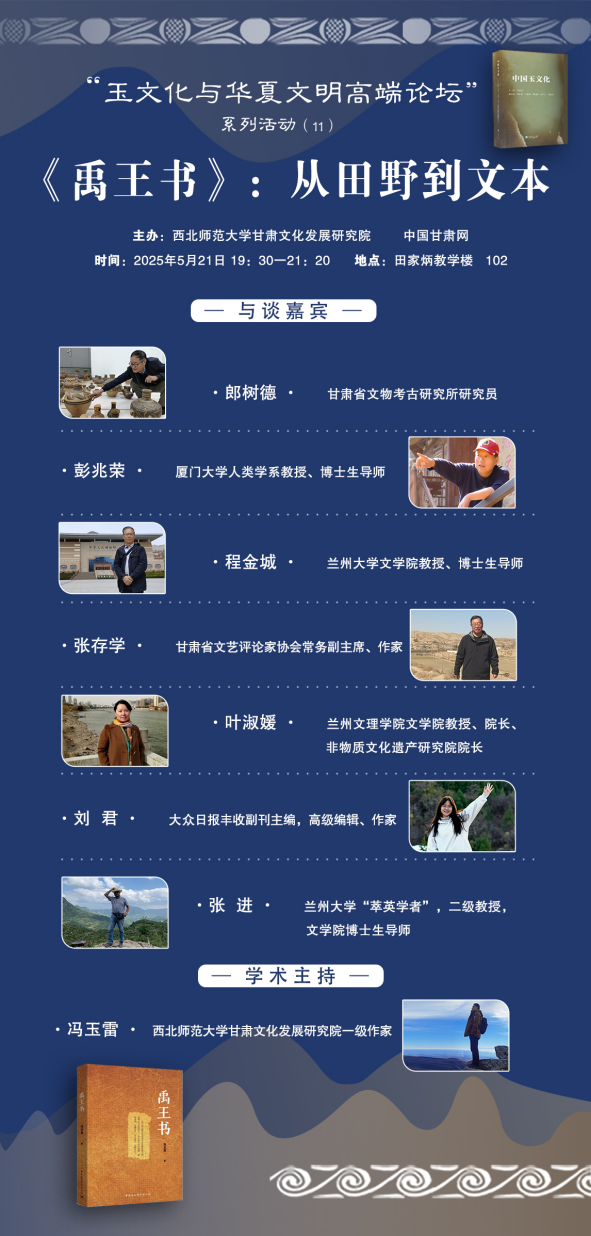 2025年5月21日,由西北師范大學(xué)甘肅文化發(fā)展研究院和中國(guó)甘肅網(wǎng)聯(lián)合主辦的玉文化與華夏文明高端論壇系列活動(dòng)之“《禹王書》:從田野到文本”在西北師范大學(xué)成功舉行。