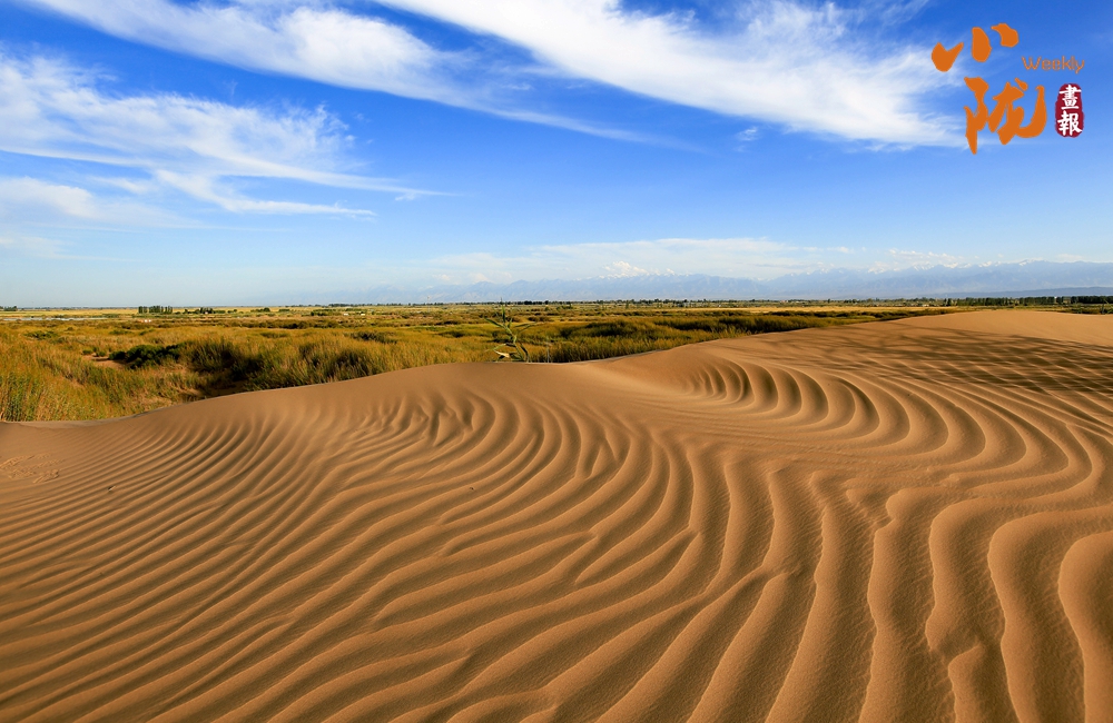 站在綠洲與大漠的結(jié)合處,觀賞四方風(fēng)景,眼前奇異的景致讓人驚嘆萬(wàn)分:一邊是莽莽蒼蒼、雄渾博大、無(wú)邊無(wú)際的大漠海洋,一邊是郁郁蔥蔥、娟秀嫵媚的綠洲碧野。這是大自然杰出的造化,這黃色與綠色之間沒(méi)有任何過(guò)渡,兩色卻形成鮮明的對(duì)比,宛如畫(huà)家手下的色盤(pán),黃綠分明、對(duì)比強(qiáng)烈而又和諧統(tǒng)一,令人叫絕。