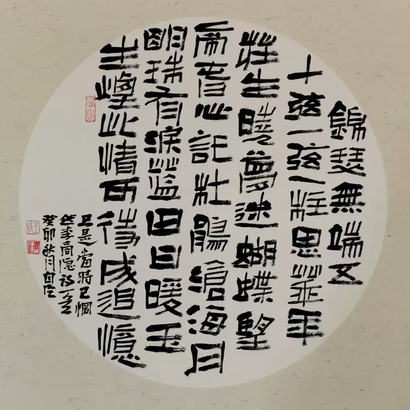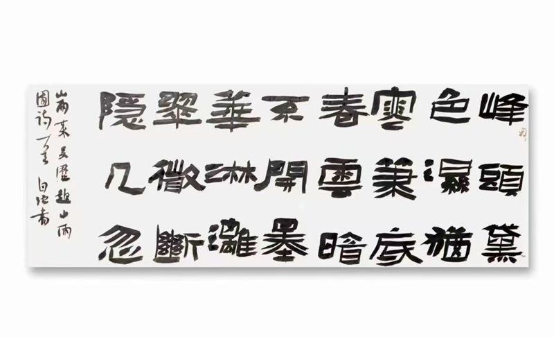 王自強(qiáng)的隸書(shū)植根于《西狹頌》的金石氣,又融入個(gè)人創(chuàng)新。他的作品《李白古風(fēng)其一》在2021年“中國(guó)書(shū)法·年展”中脫穎而出,以古樸厚重的筆法、靈動(dòng)多變的章法,位列全國(guó)前51名,成為成縣首位躋身國(guó)家級(jí)書(shū)法大展的藝術(shù)家。2025年,他的隸書(shū)作品再次入選全國(guó)第五屆隸書(shū)作品展,在15214件投稿中脫穎而出,展現(xiàn)出對(duì)漢隸藝術(shù)的深刻理解與創(chuàng)新表達(dá)。