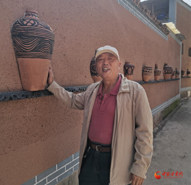 探訪完寺洼遺址后,記者一行又來到馬家窯村實地采訪。走進(jìn)馬家窯村,街道干凈整潔,花壇綠蔭中紅花奪目。尤其花壇內(nèi)間隔樹立的馬家窯陶器,和村內(nèi)道路兩旁墻上鑲嵌的造型各異的陶器,更讓整個村子彌漫出濃厚的歷史氛圍。
