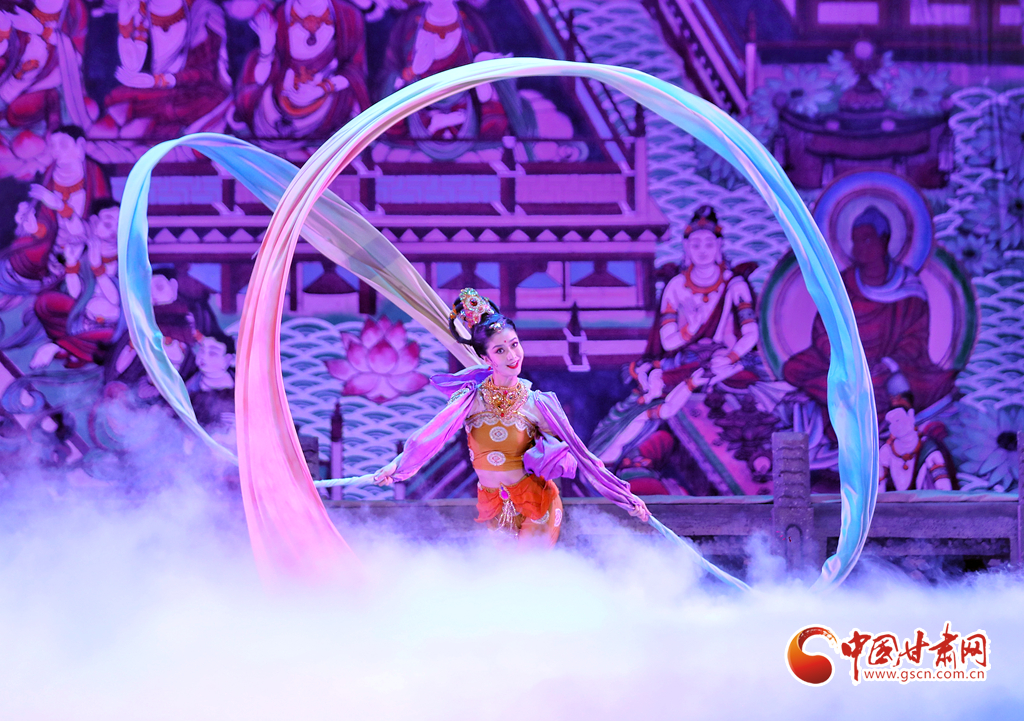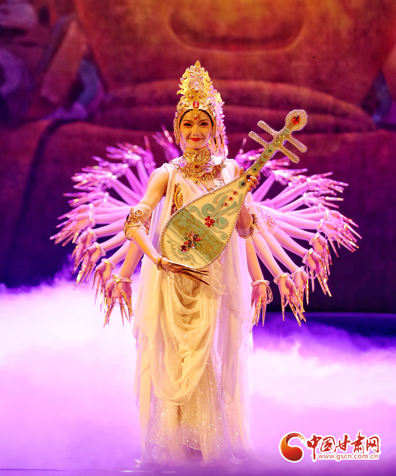 絲路漫漫、駝鈴聲聲……演出當晚,演員們以精湛投入的表演,唱響了絲綢之路的友誼贊歌,同時也為觀眾展開了一幅“活的敦煌壁畫”,從敦煌彩塑和壁畫中提煉出的“千手觀音”“反彈琵琶”“憑欄仙女舞”“霓裳羽衣舞”等舞蹈在舞臺上一一呈現(xiàn),深深打動了現(xiàn)場觀眾,贏得無數(shù)掌聲與喝彩。