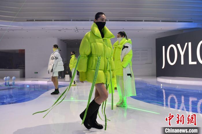 本屆青島時(shí)裝周采用“線(xiàn)上+線(xiàn)下”的方式共組織40場(chǎng)發(fā)布秀。 王海濱 攝
