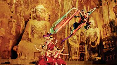 為此,主創(chuàng)人員對龍門石窟中生動(dòng)多樣的藝術(shù)造型進(jìn)行了全面梳理。“我們請教專家,翻閱、學(xué)習(xí)大量典籍,深入理解龍門石窟‘伎樂天’形象;同時(shí)把握龍門‘金剛’不同于云岡石窟、敦煌壁畫的特點(diǎn),它更為‘中國化’,更加樸實(shí)、有力量。”李鵬說,團(tuán)隊(duì)在此基礎(chǔ)上,進(jìn)一步進(jìn)行藝術(shù)化處理,編排成舞蹈,做到“每一個(gè)造型定格時(shí),體態(tài)在龍門石窟中都有據(jù)可依,可以找到原型”。