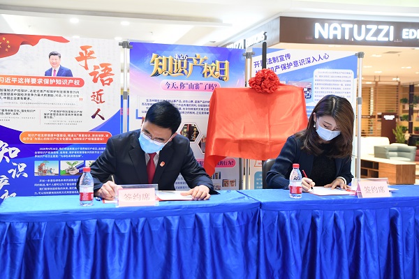 城關區(qū)法院與居然之家萬佳天水路店,就設立“知識產(chǎn)權司法保 護示范基地”及日常工作的詳細內(nèi)容簽訂備忘錄。記者 李洋 攝
