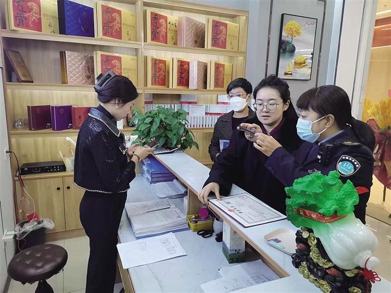 “因?yàn)槔先四挲g大了,被他們忽悠上當(dāng)受騙,現(xiàn)在我們就希望將騙取老人的近35萬(wàn)元如數(shù)退還,并賠償物質(zhì)和精神損失。”連日來(lái),張女士將此事向相關(guān)部門(mén)予以投訴。10月30日,記者與張女士一同來(lái)到春媛芙美美容美體店采訪時(shí),城關(guān)區(qū)衛(wèi)健局綜合監(jiān)督執(zhí)法所公共場(chǎng)所科和醫(yī)療市場(chǎng)科執(zhí)法人員也趕到現(xiàn)場(chǎng)。