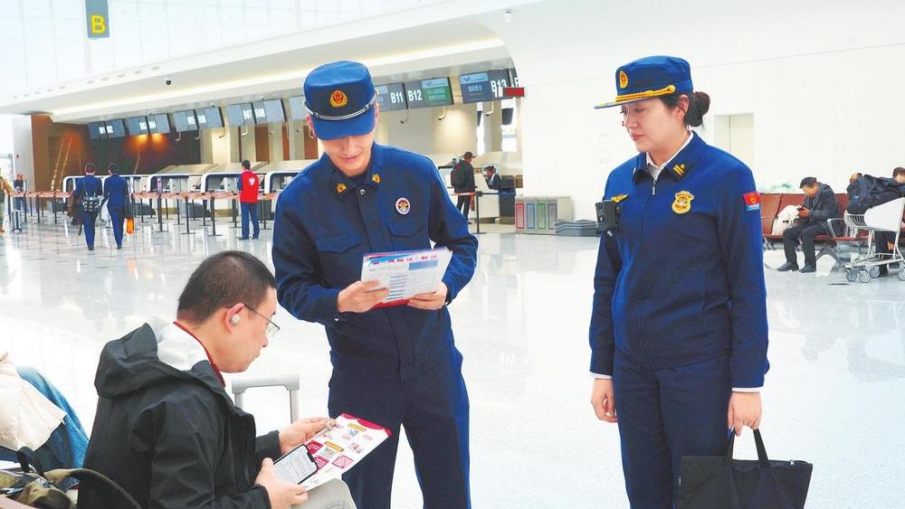 3月20日下午,在人來人往的機場大廳,幾名身著“火焰藍”制服的“藍姐姐”格外引人注目,只見“藍姐姐”們一邊向旅客及航站樓各商鋪工作人員發(fā)放消防安全宣傳資料,一邊耐心講解注意事項。這些忙碌的身影,正是蘭州新區(qū)消防救援支隊“藍姐姐”消防宣傳隊的工作人員。