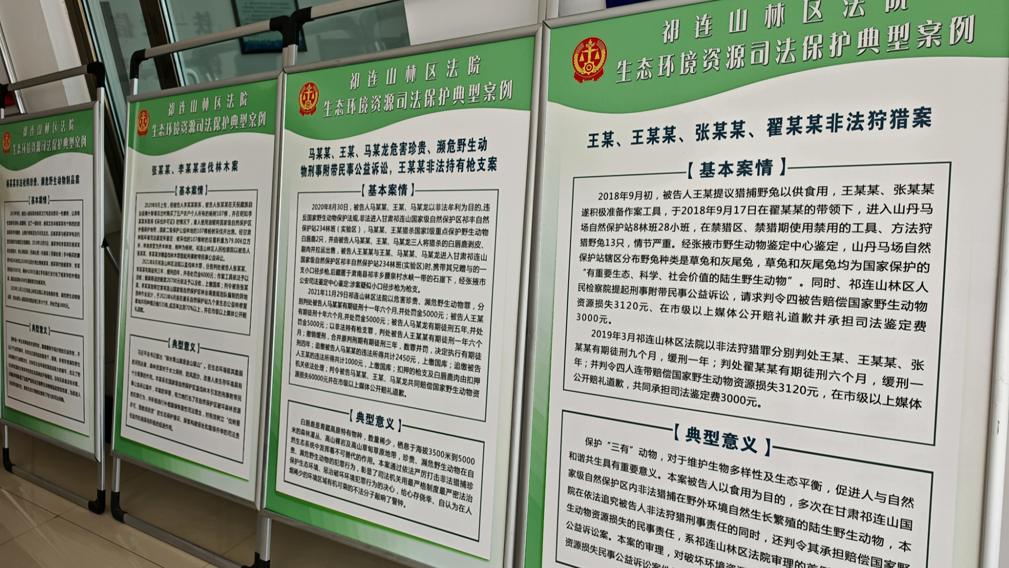 巡回審判庭的“法庭”從不在屋里。有時在油菜花田邊支起桌案,法槌一落,“王某前森林草原失火案”的庭審就成了最鮮活的普法課——這案子入選最高人民法院青藏高原生態(tài)保護典型案例,法官蹲在牧人身邊,指著草原防火設(shè)備說“咋用”,掰著指頭算“失火要擔(dān)啥責(zé)”,牧民們握著趕牧鞭聽得入神,連羊群都靜悄悄地伏在遠處。辦案點的展板上,非法采礦、危害珍貴野生動物等10個典型案例圖文并置,像10面透亮的鏡子,照得生態(tài)保護的法律紅線清清楚楚。