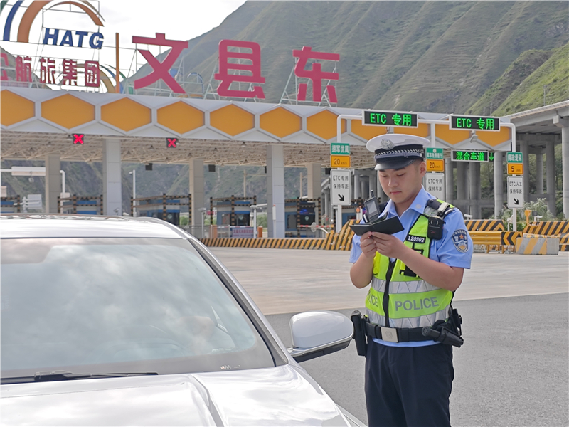8月21日下午,車(chē)輛駛出高樓山隧道1公里后在文縣東收費(fèi)站下高速,隴南市公安局交通管理支隊(duì)高速公路八大隊(duì)的民警任濤和同事們正在開(kāi)展定點(diǎn)勤務(wù)。
