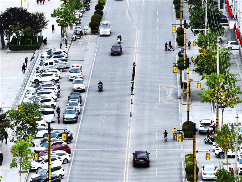 在熙攘的鹽井古街,巡邏民警的身影融入如織的游人;踏入寧?kù)o的秦皇湖景區(qū),執(zhí)勤民警的腳步輕撫過(guò)每一條林間小徑;穿梭在節(jié)日的秦人廣場(chǎng),閃爍的警燈與萬(wàn)家燈火交相輝映——這升騰流動(dòng)的“煙火人間”背后,總有一抹“藏藍(lán)”在默默守護(hù)。