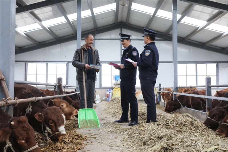 ▲平?jīng)鍪泄簿轴轻挤志终优沙鏊褫o警深入轄區(qū)紅牛養(yǎng)殖基地,開展針對性普法宣傳活動,進一步筑牢轄區(qū)紅牛養(yǎng)殖產(chǎn)業(yè)法治防線,提升廣大養(yǎng)殖戶的法律意識。(張鏡鏡 攝)
