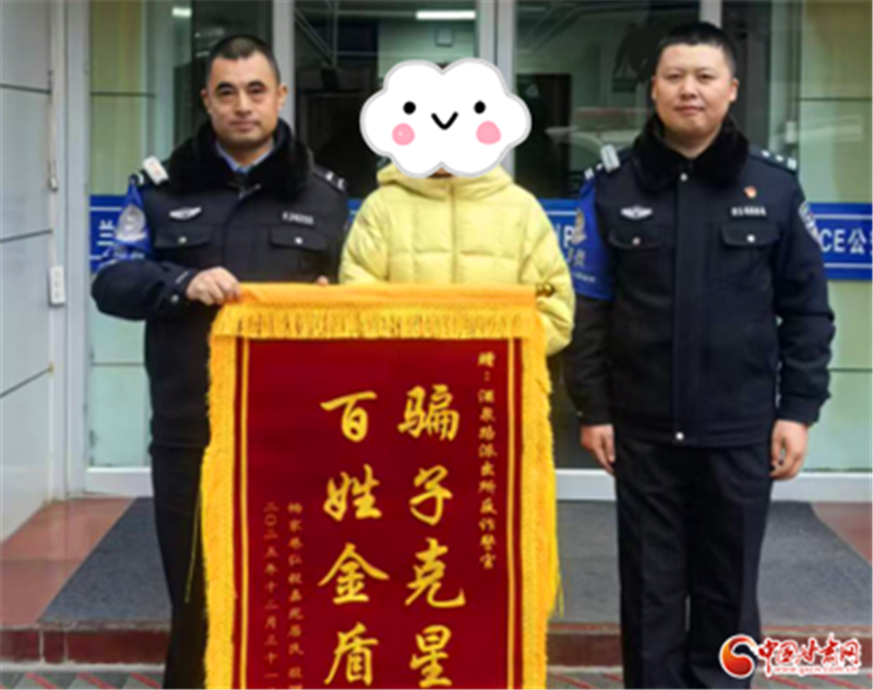 新年伊始,蘭州市公安局城關(guān)分局酒泉路派出所收到了一份特殊的“新年禮物”:轄區(qū)居民王女士將一面“騙子克星 百姓金盾”的錦旗,送到民警張繼勝、宋健偉手中,感謝民警在緊急時刻為其保住160萬元資金。