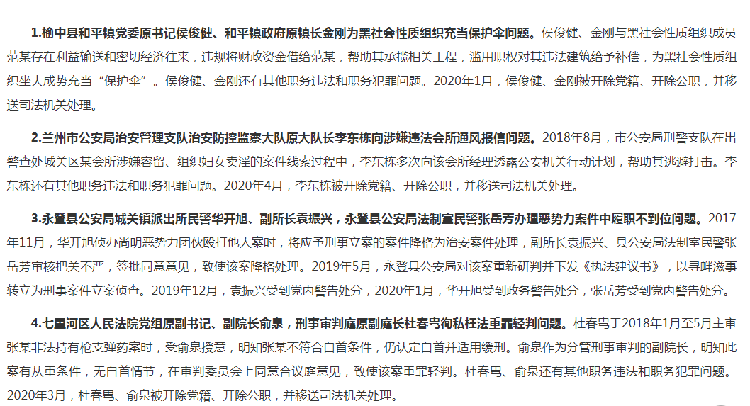 蘭州市紀(jì)委監(jiān)委通報(bào)4起掃黑除惡專項(xiàng)斗爭“懲腐打傘”典型問題