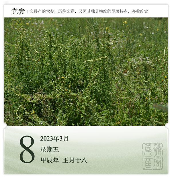 簡(jiǎn)介:黨參,多年生纏繞藤本,我國(guó)有名的藥食兩用植物,具有健脾益肺、養(yǎng)血生津之功效。現(xiàn)代藥理研究表明,黨參還具有增強(qiáng)機(jī)體免疫力、保護(hù)胃腸道黏膜及抗?jié)?、促進(jìn)造血機(jī)能、延緩衰老等多種藥理作用。黨參也是保健品,可入膳食,可做茶也可泡酒。花果期7-10月。文縣產(chǎn)的黨參,歷稱“文黨”,又因其獨(dú)具橫紋的顯著特點(diǎn),亦稱“紋黨”,質(zhì)地優(yōu)良,歷史悠久,生長(zhǎng)特殊,加工考究,入藥精道。其藥用價(jià)值與人參并列,為質(zhì)高的滋補(bǔ)佳品。