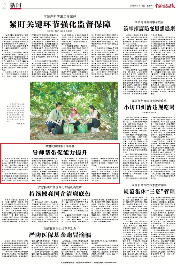 近日,甘肅省慶陽市紀(jì)委監(jiān)委制定出臺“導(dǎo)師幫帶”練兵計劃實(shí)施方案,通過“導(dǎo)師帶徒、實(shí)踐育人”模式,以老帶新、以案代訓(xùn),著力提升年輕干部政治素養(yǎng)、業(yè)務(wù)能力和專業(yè)水平。