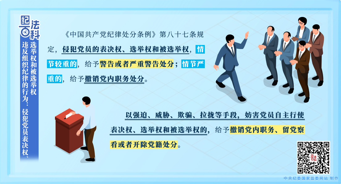 從各地紀(jì)委監(jiān)委通報(bào)的典型案例看,一些黨員干部和公職人員通過各種手段侵犯黨員的表決權(quán)、選舉權(quán)和被選舉權(quán),均受到嚴(yán)肅處理。