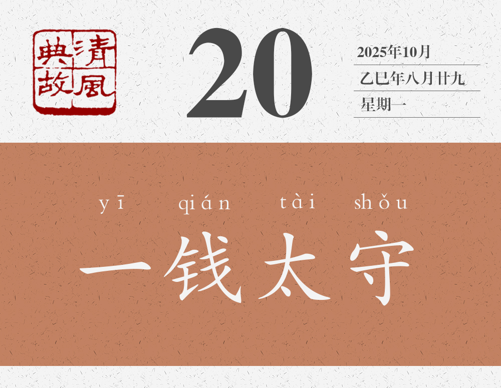劉寵聽了他們的話說:“我的政績?cè)趺茨芟衲鷰孜徽f得這樣好呢?真是辛苦你們了!”為表示接受他們的美意,他從每個(gè)人帶來的錢中挑了一枚收下了。民間還流傳說,劉寵出了山陰界,就把收下的幾枚錢投進(jìn)江里,江水頓時(shí)清澈見底。從此之后,此江便被稱為錢清江。劉寵去世后,人們?cè)诮呅蘖艘粋€(gè)亭子就叫“一錢亭”,為他修建了一座廟就叫“一錢太守廟”。“一錢太守”不僅成為劉寵的稱號(hào),也成為后世稱頌地方官員為民造福、為政清廉的典故。明人高啟詩《野老行送陳大尹》:“雞鳴相送拜道邊,愿公受取一大錢。”