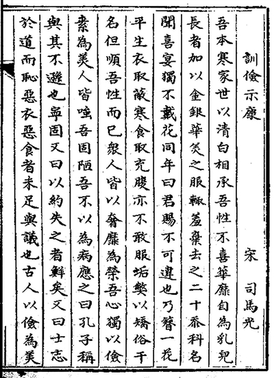 北宋司馬光的名篇《訓(xùn)儉示康》,教導(dǎo)其子崇儉戒奢,選自江西省圖書館藏清代《古文輯略》。圖片來(lái)源:中華古籍智慧化服務(wù)平臺(tái)