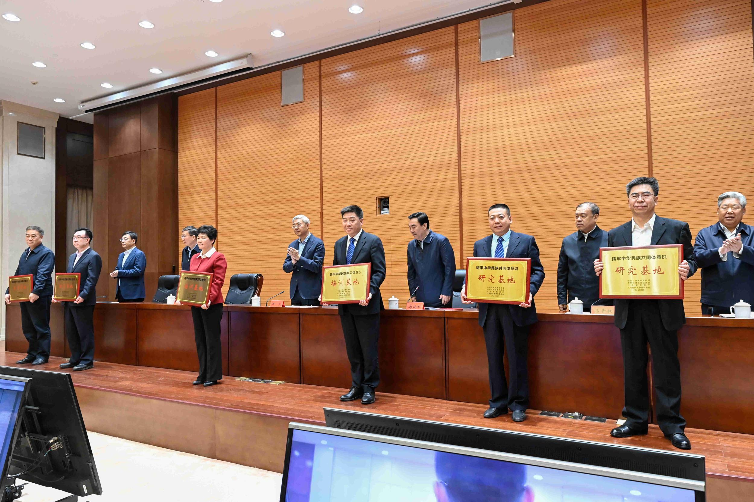 會(huì)上,為首批甘肅省鑄牢中華民族共同體意識(shí)教育基地、培訓(xùn)基地和研究基地授牌。