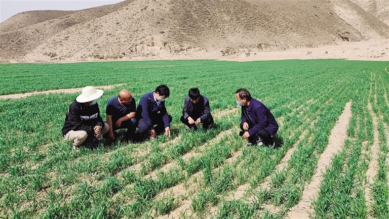 中國(guó)甘肅網(wǎng)5月11日訊 據(jù)蘭州日?qǐng)?bào)報(bào)道記者 程珊珊 文/圖)走進(jìn)皋蘭縣石洞鎮(zhèn)鎮(zhèn)東灣村的田間地頭,只見(jiàn)綠油油的麥田分布在村道兩旁,蘊(yùn)含綠色的期盼。皋蘭縣農(nóng)技中心主任王朝軍又下地了,帶著小鏟子、鋼卷尺等幾件從不離身的家伙。走進(jìn)麥田觀察根系、測(cè)量株高,細(xì)心查看苗情、墑情、肥情以及病蟲(chóng)害情,而他的身邊還圍著不少村里的種糧大戶(hù)。
