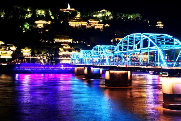 中國(guó)甘肅網(wǎng)5月24日訊 據(jù)蘭州日?qǐng)?bào)報(bào)道記者 張建平 攝)為迎接甘肅省第十四次黨代會(huì)勝利召開(kāi),我市在標(biāo)志性橋梁、廣場(chǎng)及樓體精心組織以“蘭州藍(lán)”為主題的燈光秀,營(yíng)造濃厚的喜慶氛圍。中山橋、黃河樓等處燈光展示“蘭州藍(lán)”,這顯示了全市上下守護(hù)碧水藍(lán)天的信心,更昭示著全市黨員干部堅(jiān)定垂范清廉蘭州,共建政治生態(tài)“蘭州藍(lán)”的決心。