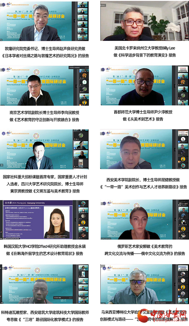中國甘肅網(wǎng)11月16日訊 (本網(wǎng)記者 張?zhí)m琴 通訊員 王秀)推進(jìn)“一帶一路”沿線國家和地區(qū)美術(shù)交流,促進(jìn)美術(shù)教育的國際化合作和發(fā)展,搭建國際交流的學(xué)術(shù)平臺,“一帶一路”美術(shù)教育國際研討會14日在西北師范大學(xué)落幕。來自美國、韓國、俄羅斯、馬來西亞等十個國家,三十八所海內(nèi)外高校、研究院、美術(shù)館、美術(shù)協(xié)會、雜志社、中小學(xué)領(lǐng)域近五十位專家在線上參加了會議,深入分析了當(dāng)前美術(shù)教育所面臨的挑戰(zhàn)與機遇,共同探討了面向未來的美術(shù)教育模式、路徑和前景。