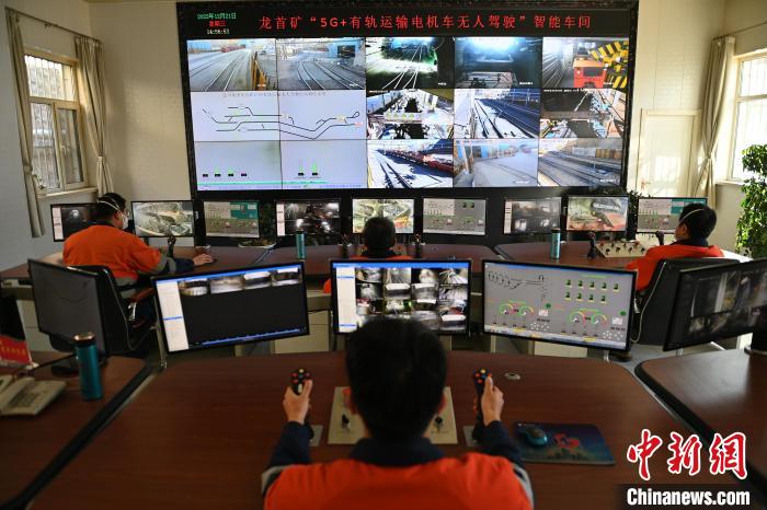 圖為金川集團龍首礦“5G+有軌運輸電機車無人駕駛”智能車間內(nèi),操作員正在進行遠程控制。