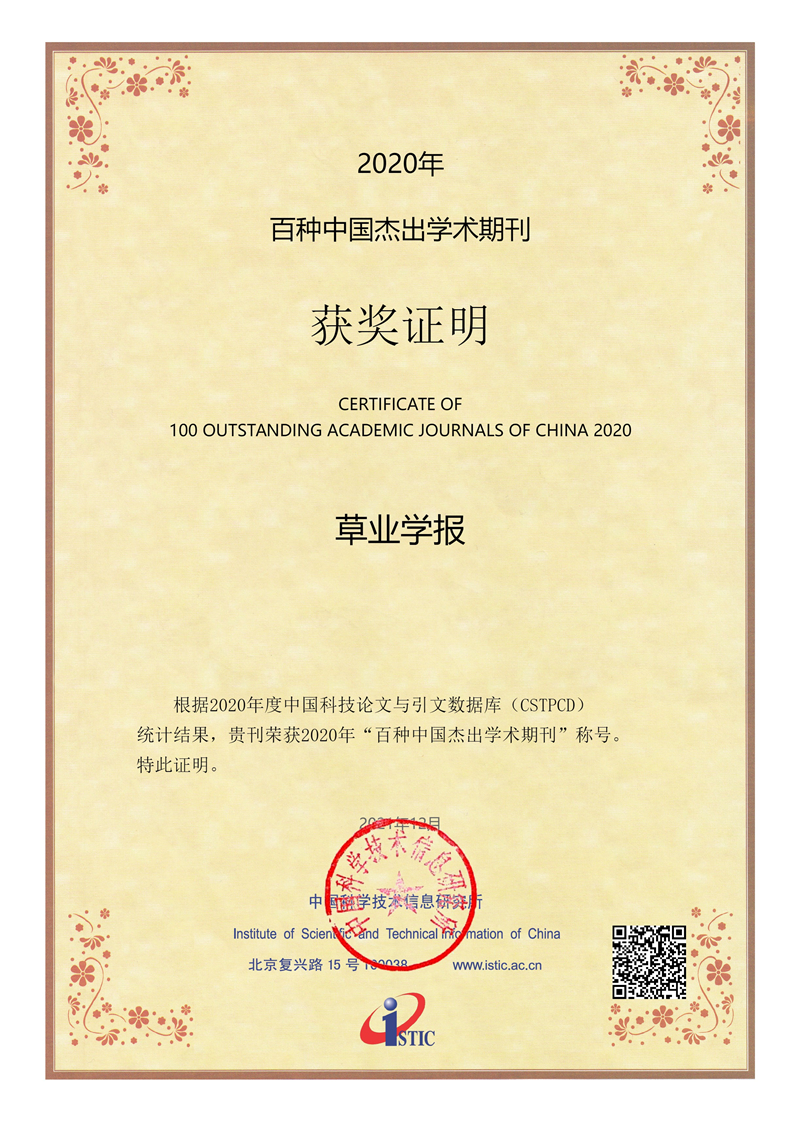 12月29日,中國科學技術信息研究所發(fā)布《2022年中國科技論文統(tǒng)計報告》,并評選出“2021年度中國百種杰出學術期刊”,其中甘肅省2種,分別是:中國草原協(xié)會、蘭州大學草地農(nóng)業(yè)科技學院主辦的《草業(yè)學報》,中科院寒旱所主辦的《高原氣象》。
