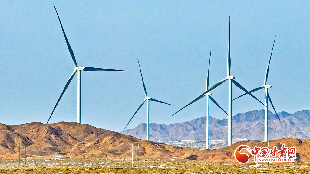 2月21日,張掖市臨澤縣平川北灘30萬千瓦風電項目建設(shè)現(xiàn)場,已建成的風電機組。
