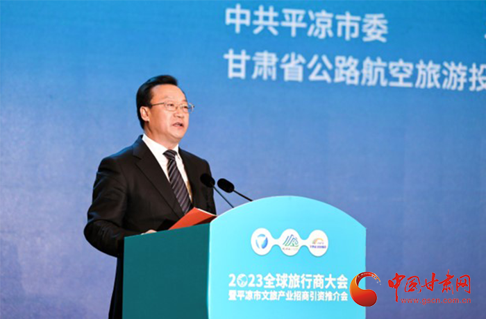 何效祖在致辭中說(shuō),平?jīng)鍪歉拭C向東開(kāi)放的“門戶”城市,是風(fēng)景宜人的旅游城市,是甘肅布局的文旅康養(yǎng)基地和支撐“一核三帶”區(qū)域發(fā)展格局中的重要支點(diǎn),擁有崆峒山、大云寺·王母宮、瑤池溫泉等眾多聞名遐邇的人文和自然景觀。今天,我們與平?jīng)鍪形姓?、中?guó)旅行社協(xié)會(huì)、甘肅公航旅集團(tuán)一道搭建平臺(tái),誠(chéng)邀各位嘉賓走進(jìn)甘肅、深入平?jīng)觯M織開(kāi)展宣傳推介、洽談合作、展示展銷、考察踩線等系列活動(dòng),就是要引導(dǎo)大家深度感知甘肅高質(zhì)量發(fā)展的強(qiáng)烈愿望,實(shí)地觸摸甘肅文旅如火如荼的生動(dòng)實(shí)踐,誠(chéng)懇表達(dá)隴原兒女“視企業(yè)家為最寶貴財(cái)富”的真誠(chéng)合作和赤誠(chéng)服務(wù)之心。我們衷心希望,廣大中外旅行商和文旅專家、文旅企業(yè)家以本次大會(huì)為契機(jī),加強(qiáng)交流互鑒,深化務(wù)實(shí)合作,加大在甘投資力度,組織更多游客到甘肅觀光旅游,帶動(dòng)更多優(yōu)質(zhì)文旅企業(yè)和項(xiàng)目落戶甘肅,合力譜寫甘肅文旅高質(zhì)量發(fā)展的嶄新篇章!