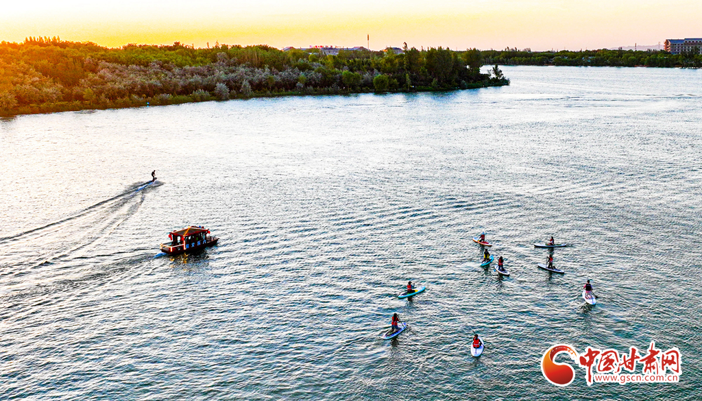6月13日,張掖市甘州區(qū)“樂(lè)游甘州·水上嘉年華”觀光娛樂(lè)項(xiàng)目正式啟航,眾多游客體驗(yàn)觀光畫(huà)舫、動(dòng)力沖浪板、快艇滑翔傘等水上運(yùn)動(dòng)觀光項(xiàng)目。