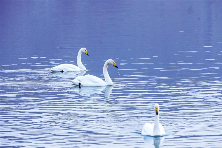“生態(tài)好不好,鳥(niǎo)兒是晴雨表。”近日,西固區(qū)達(dá)川鎮(zhèn)三河口迎來(lái)了今年首批越冬大天鵝,吸引了眾多市民游客前往觀賞。記者從蘭州市林業(yè)局了解到,目前黃河蘭州段濕地分布和棲息的濕地鳥(niǎo)類(lèi)約有68種,其中,國(guó)家I級(jí)重點(diǎn)保護(hù)鳥(niǎo)類(lèi)3種(黑嘴鷗、黑鸛、白尾海雕),國(guó)家II級(jí)保護(hù)鳥(niǎo)類(lèi)5種(大天鵝、鴛鴦、鹮嘴鷸、白腰杓鷸、鶚)。鵲鴨、綠頭鴨、斑嘴鴨、普通秋沙鴨和漁鷗等優(yōu)勢(shì)越冬水鳥(niǎo)種群數(shù)量較大,主要棲息地分布在沿線(xiàn)各灘涂地,棲息地質(zhì)量較高。
