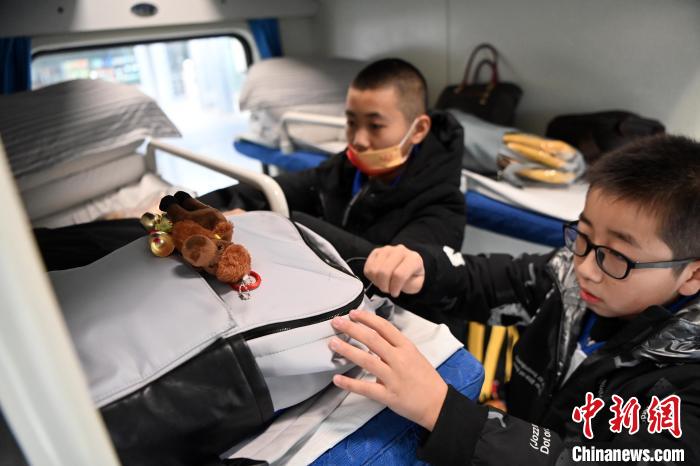 1月15日,“隴原學(xué)子游敦煌”敦煌文化研學(xué)季專列發(fā)班儀式在甘肅蘭州舉行,圖為學(xué)生在K9667次列車上。九美旦增 攝