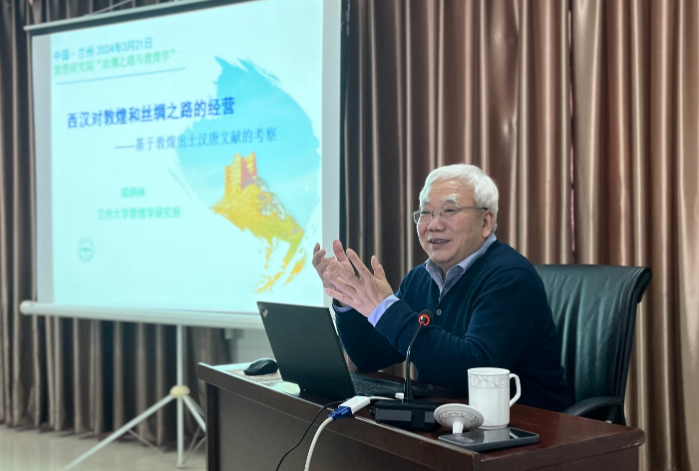 2024年3月21日下午,蘭州大學(xué)鄭炳林教授應(yīng)邀在“絲綢之路與敦煌學(xué)”系列公益學(xué)術(shù)講座主講《兩漢對(duì)敦煌和絲綢之路的經(jīng)營(yíng)》。講座由敦煌研究院敦煌文獻(xiàn)研究所主辦,趙曉星研究員主持,在蘭州分院舉行。我院專(zhuān)家學(xué)者,蘭州大學(xué)、西北師范大學(xué)、西北民族大學(xué)師生,及敦煌學(xué)愛(ài)好者50余人現(xiàn)場(chǎng)參加了此次學(xué)術(shù)活動(dòng)。
