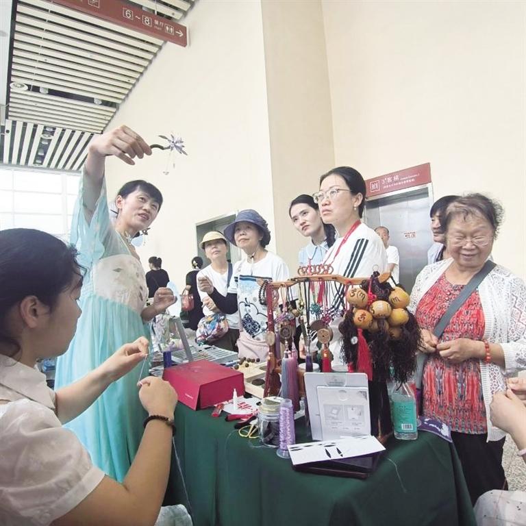 孫鳳茹告訴記者,這是自己帶領(lǐng)團隊第一次參加蘭洽會,看到那么多人喜歡自己和團隊成員們設(shè)計制作的作品,大家就特別開心。“有一對新婚夫婦喜歡上了我們的一款發(fā)簪,當場就買下來。因為它不僅是一件精美的頭飾,更是一款承載了滿滿祝福與美好寓意的愛情信物。”