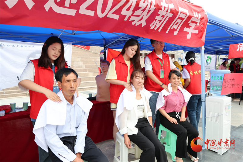 近水樓臺(tái)先得月,甘肅中醫(yī)藥大學(xué)校園社團(tuán)依托中醫(yī)藥專業(yè)優(yōu)勢(shì),在迎新點(diǎn)開設(shè)推拿按摩志愿服務(wù),以專業(yè)手法解決新生和家長的旅途疲勞。