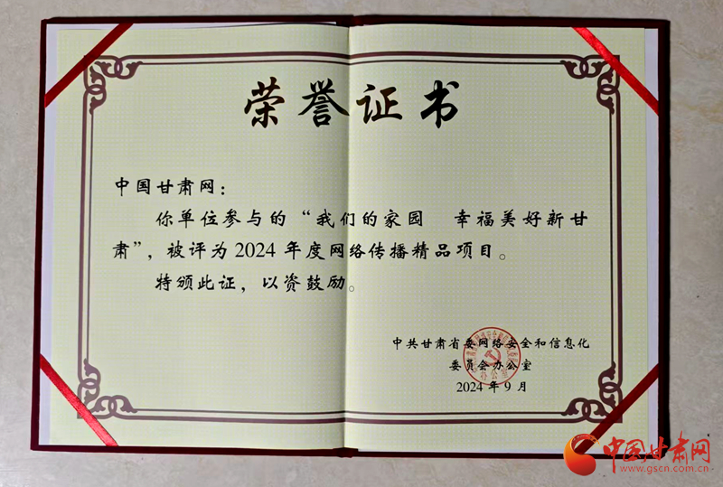同時(shí),中國甘肅網(wǎng)參與的“我們的家園幸福美好新甘肅”和“中國式現(xiàn)代化的萬千氣象網(wǎng)絡(luò)名人甘肅行”兩個(gè)項(xiàng)目被評為2024年度網(wǎng)絡(luò)傳播精品項(xiàng)目。