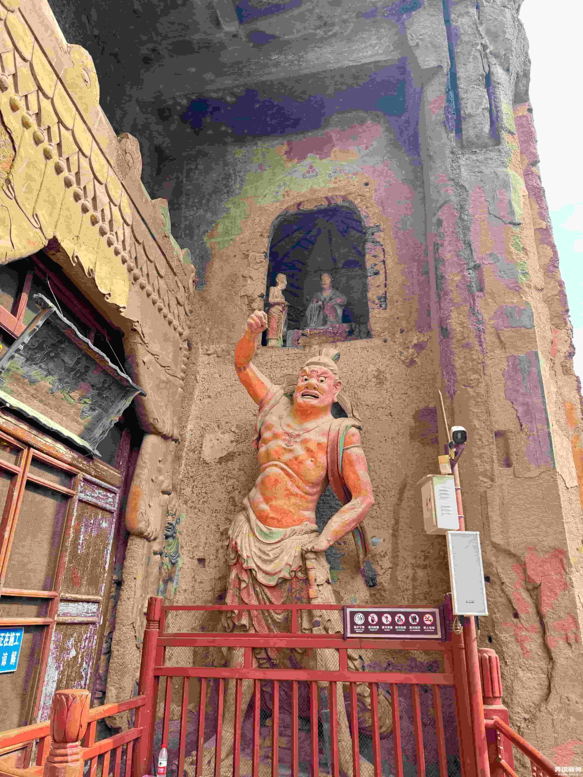 形如麥垛的山體之上,窟龕如同蜂窩般密密麻麻分布在絕壁之上。麥積山石窟始鑿于十六國(guó)后秦時(shí)期,現(xiàn)存大小窟龕221個(gè),造像3938件10632身,壁畫(huà)近1000平方米。