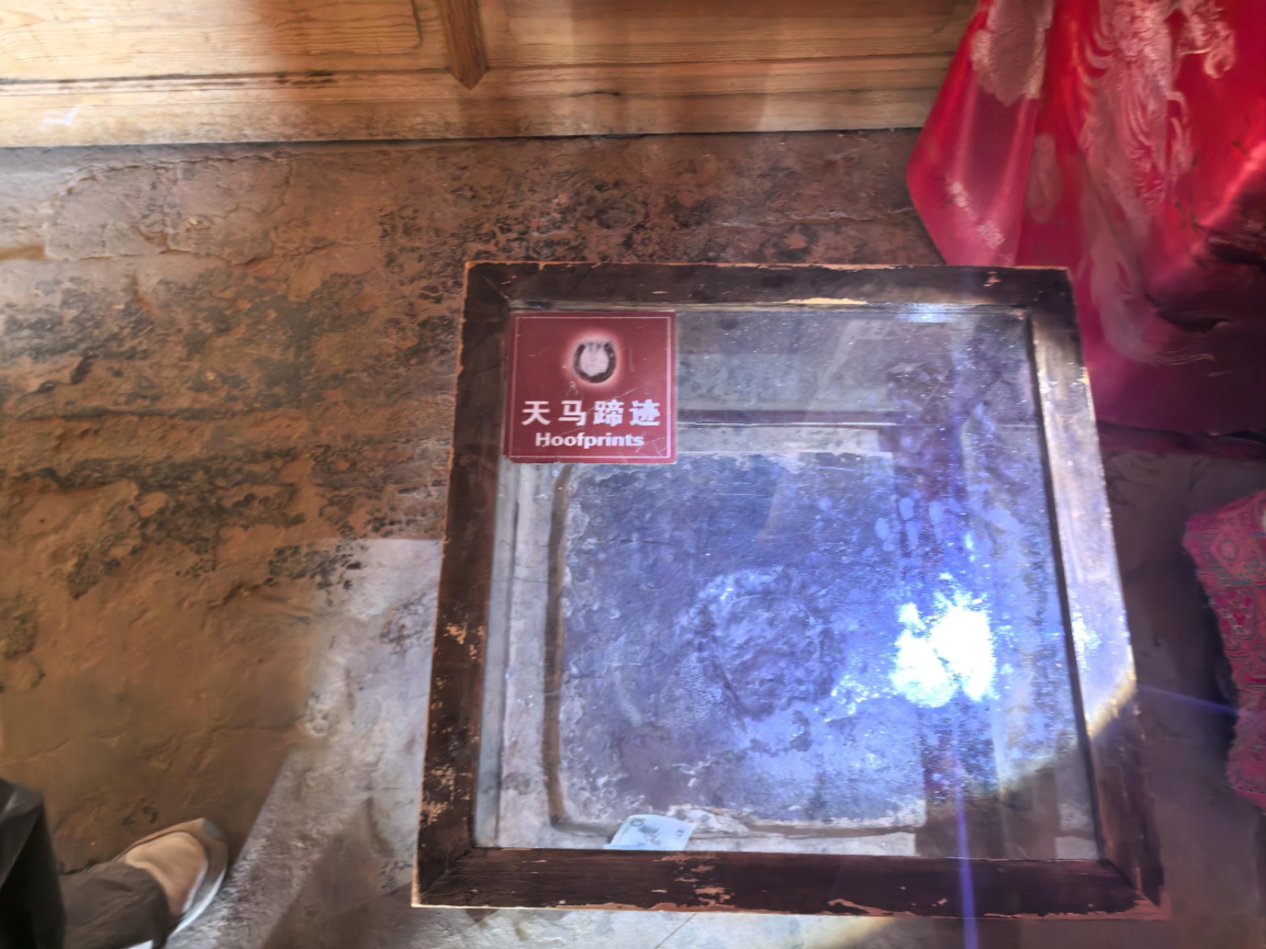 山頂一石窟內(nèi)留有深深的馬蹄足跡,傳說(shuō)是天馬下凡在此飲水時(shí)。一馬蹄印落在這里的一塊巖石上,寺院由此而得名。如今,這塊蹄印石被保存在馬王殿內(nèi)。