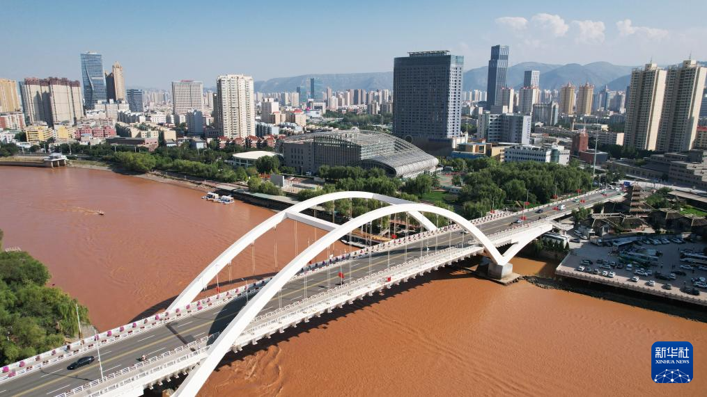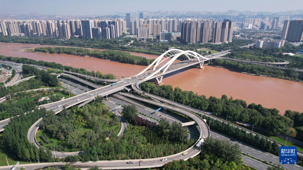 這是黃河蘭州段的雁灘黃河大橋(9月24日攝,無(wú)人機(jī)照片)。新華社記者陳斌攝