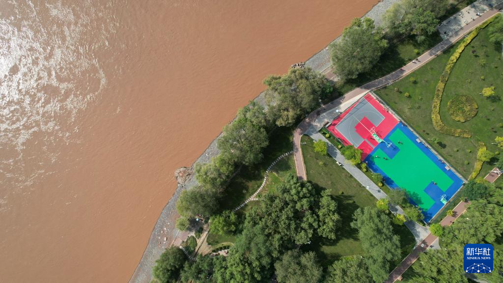 這是位于蘭州市城關(guān)區(qū)黃河北岸的蘭州馬拉松公園一處籃球場(chǎng)(9月24日攝,無(wú)人機(jī)照片)。新華社記者陳斌攝