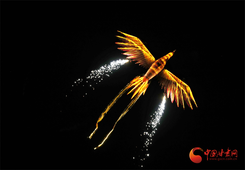 5月28日晚,五只鳳凰劃過慶陽夜空,拉開了第二十屆慶陽香包民俗文化節(jié)迎賓演出的大幕。傳說,周先祖不窋乘鳳凰來到慶陽大地,教民稼穡,肇始農(nóng)耕文明之源。晚會以鳳凰于飛啟幕,串聯(lián)慶陽的過去、現(xiàn)在與未來,結(jié)合現(xiàn)代聲光電技術(shù),講述香包飄香的慶陽故事。
