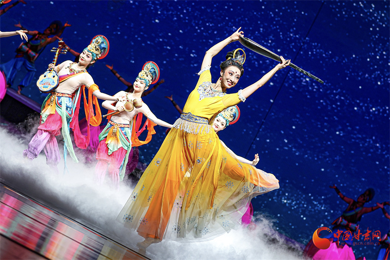 中國(guó)甘肅網(wǎng)9月21日訊(西北角·中國(guó)甘肅網(wǎng)記者 宋芳科 任磊 黃宛悠 鄭蕓蕓)絲路長(zhǎng)風(fēng)奏和合樂(lè)章,花雨繽紛迎四海賓朋。9月20日晚,在第八屆絲綢之路(敦煌)國(guó)際文化博覽會(huì)即將啟幕之際,敦煌大劇院內(nèi)華燈初上、舞韻生輝、樂(lè)聲流淌,舞劇《絲路花雨》新版作為文博會(huì)迎賓演出震撼上演。這部承載著46年藝術(shù)積淀的中國(guó)舞劇經(jīng)典,以“守敦煌舞韻之根,創(chuàng)時(shí)代表達(dá)之新”的藝術(shù)實(shí)踐,為與會(huì)全球嘉賓帶來(lái)了一場(chǎng)穿越千年的文化藝術(shù)盛宴。