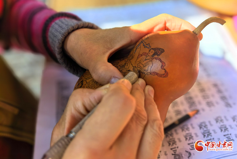 深秋的午后,陳兵手持刻刀,在小小的葫蘆上精雕細(xì)琢,仿佛在與時(shí)光對(duì)話,將一個(gè)個(gè)美好的愿景都鐫刻其中。