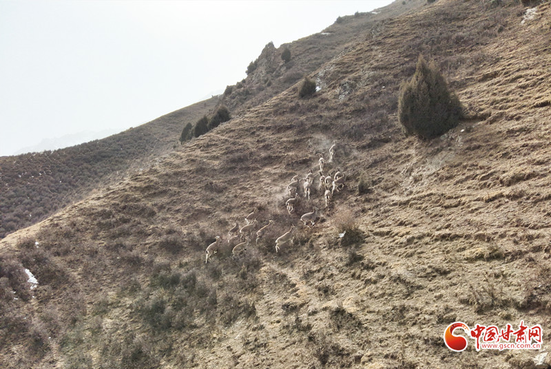 近日,民樂縣大河口自然保護站扁都口資源管護站人員于高海拔區(qū)域日常巡護時,邂逅一大群巖羊在山坡覓食、奔跑的珍貴場景,巖羊數(shù)量約50只。