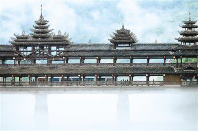 風(fēng)雨橋,也被稱為花橋、福橋,是侗族、瑤族、壯族、畬族等民族聚居地特有的橋,流行于湖南、湖北、貴州、廣西等地。風(fēng)雨橋正是伴著這些民族的發(fā)展而來。因?yàn)樾腥诉^往能在這里躲避風(fēng)雨,故名風(fēng)雨橋。