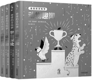“奇怪的冷科學(xué)”叢書(貴州人民出版社)包含動(dòng)物、人體、宇宙發(fā)明四大主題,介紹了400多個(gè)讓讀者忍俊不禁的冷知識(shí)。書中,讀者可以看到能將物體表面變成觸摸屏的神奇噴霧、喝完水可以直接吃掉的瓶子、有指紋的考拉、建在月球上的Wi-Fi熱點(diǎn)……更有腦洞插圖幽默碰撞,是一套適合小讀者的科學(xué)繪本。