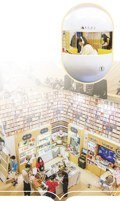 圖①:讀者在上海書展現(xiàn)場(chǎng)體驗(yàn)“未來(lái)自習(xí)室”。