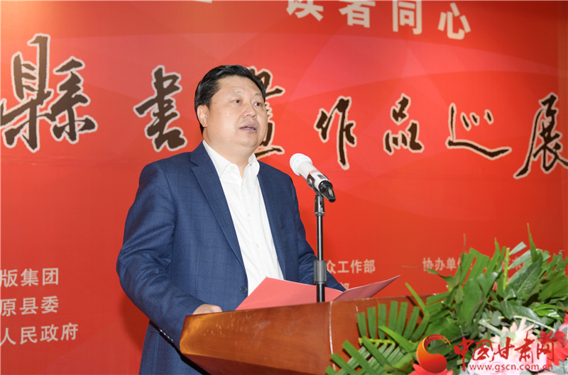 劉永升在致辭中說,鎮(zhèn)原是中國書法之鄉(xiāng),讀者是甘肅文化名片,企縣因扶貧而結(jié)緣,因文化而牽手。自2017年定點(diǎn)幫扶鎮(zhèn)原以來,讀者出版集團(tuán)著力實(shí)施了一批“看得見、摸得著、留得下、有成效”的好項(xiàng)目,探索出一條富有“讀者”特色的幫扶路子。特別是立足文化企業(yè)定位,堅持扶智扶志,通過開展勞動技能培訓(xùn)、幫助改善教育條件、推介宣傳地方資源、建設(shè)“讀者鄉(xiāng)村文化驛站”等一系列卓有成效的工作,切實(shí)打好“文化扶貧”牌,既堅定了廣大群眾戰(zhàn)勝貧困的信心和決心,更激發(fā)了貧困群眾依靠雙手、勤勞致富的積極性、主動性。此次與鎮(zhèn)原縣聯(lián)合舉辦書畫巡展,是開展文化扶貧、助力書香社會建設(shè)的務(wù)實(shí)之舉,也是提升“文化鎮(zhèn)原”影響力、加快地方文化產(chǎn)業(yè)發(fā)展的積極行動,更是提高貧困群眾文化素質(zhì)、振奮群眾精神風(fēng)貌的重要舉措。
