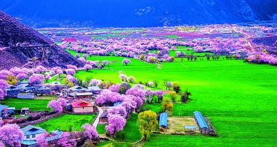 波密桃花谷桃花盛開 西藏林芝市波密桃花谷,面積約為155.04平方千米,平均海拔2740米。每年3月到4月中旬,這里的桃花陸續(xù)開放,人文景觀豐富的雪山下、村落間隨處都是桃花的蹤跡。作家江子在散文《去林芝看桃花》中寫道:“我看到一路上它大片大片地盛開。它向著我奔跑。好像是它終于認(rèn)出我來,然后相邀更多的桃花來與我相認(rèn)……”央青占堆(藏族)攝/光明圖片