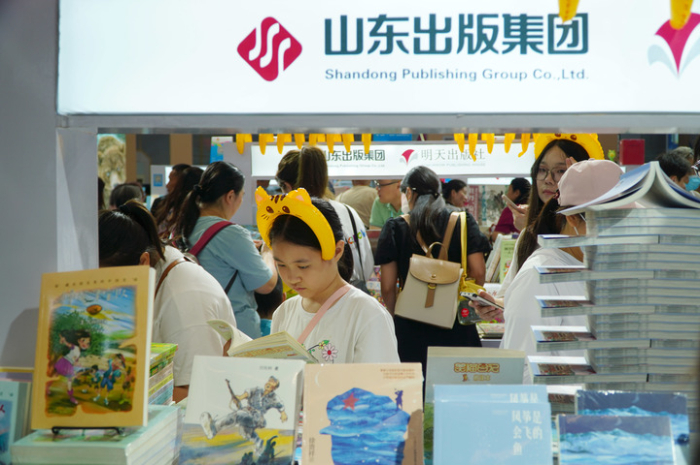 正值暑假,書博會上少兒類圖書最受青睞。二十一世紀出版社集團攜近千種圖書參展,設置“大中華尋寶記”和“世紀繪本館”主題展館,吸引眾多目光。暢銷書“大中華尋寶記”系列新書和文創(chuàng)產品一經亮相便售罄,備受小讀者喜愛。